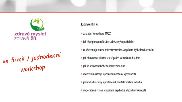 – workshop pro snížení rizik pracovního stresu i osobního napětí a přetížení