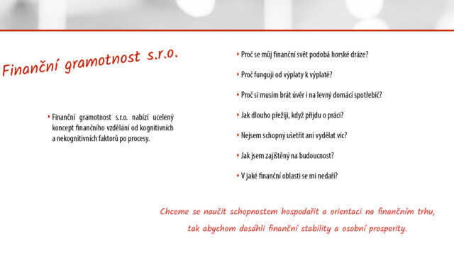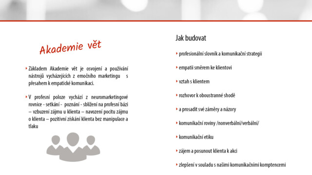 Všechny vzdělávací projekty lze objednat pro firmy, skupiny a jednotlivce. Cena se odvíjí podle počtu osob na jednotlivých akcích. Konkrétní prezentace vámi vybraného kurzu, workshopu, semináře či přednášky vám rádi zašleme.